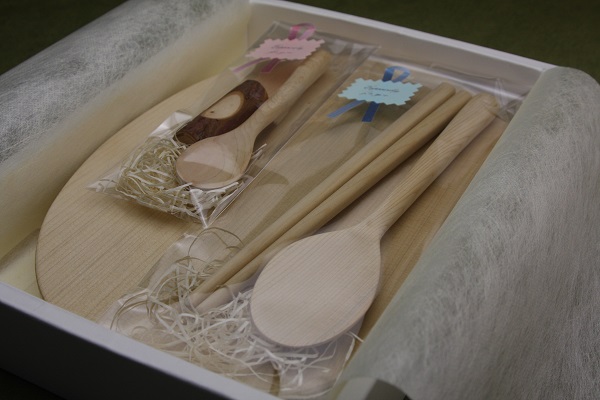 『青森ヒバの離乳食調理セット』 (http://item.rakuten.co.jp/babynews/c/0000000102/)は、抗菌・消臭・防虫に優れた青森ヒバ製の調理用スプーンと箸、まな板、離乳食用スプーン、スプーン置きの5点をセットにした赤ちゃんにもママにも優しい自然派の出産祝いギフトです。