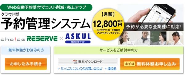 ・名称:クラウド型ネット予約管理システム「ChoiceRESERVE」(CSVダウンロード機能付きアスクルオリジナルプラン)