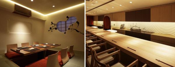 個室を中心としたレイアウトに、モダンさと和の伝統を踏まえた設えです。