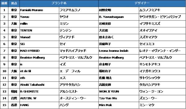 デザイナー: 韓国、台湾、香港のアジア各国の代表各1ブランド