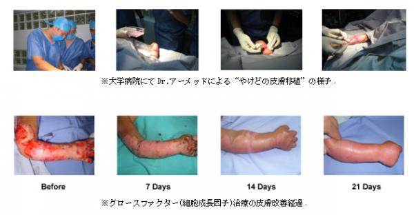Dr.アーメッドはカリフォルニア大学で皮膚移植の研究をしていた際、より早く移植する皮膚を培養しなければならず、その培養液(グロースファクター)の配合を研究していた人物。