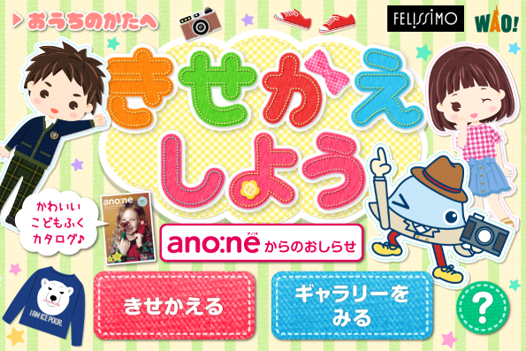 「フェリシモ×ワオっち!きせかえしよう」は、『ano:ne(アノネ)』のかわいいお洋服を使って、着せ替えを楽しめるキッズ向けアプリです。アイテムは80種類、300万通りのコーディネイトが可能です。こどもが自由に洋服や背景を選び、コーディネイトを考えることで、自我の発達や感性を育みます。