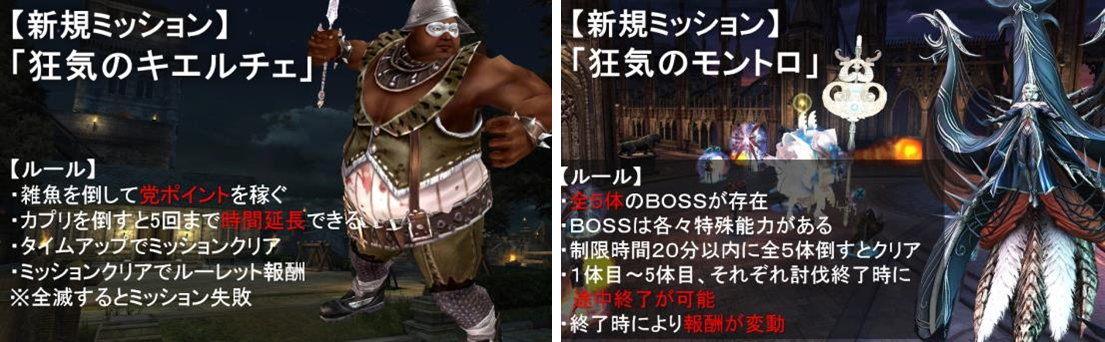 <党ミッションに新たに「狂気のキエルチェ」「狂気のモントロ」実装>
