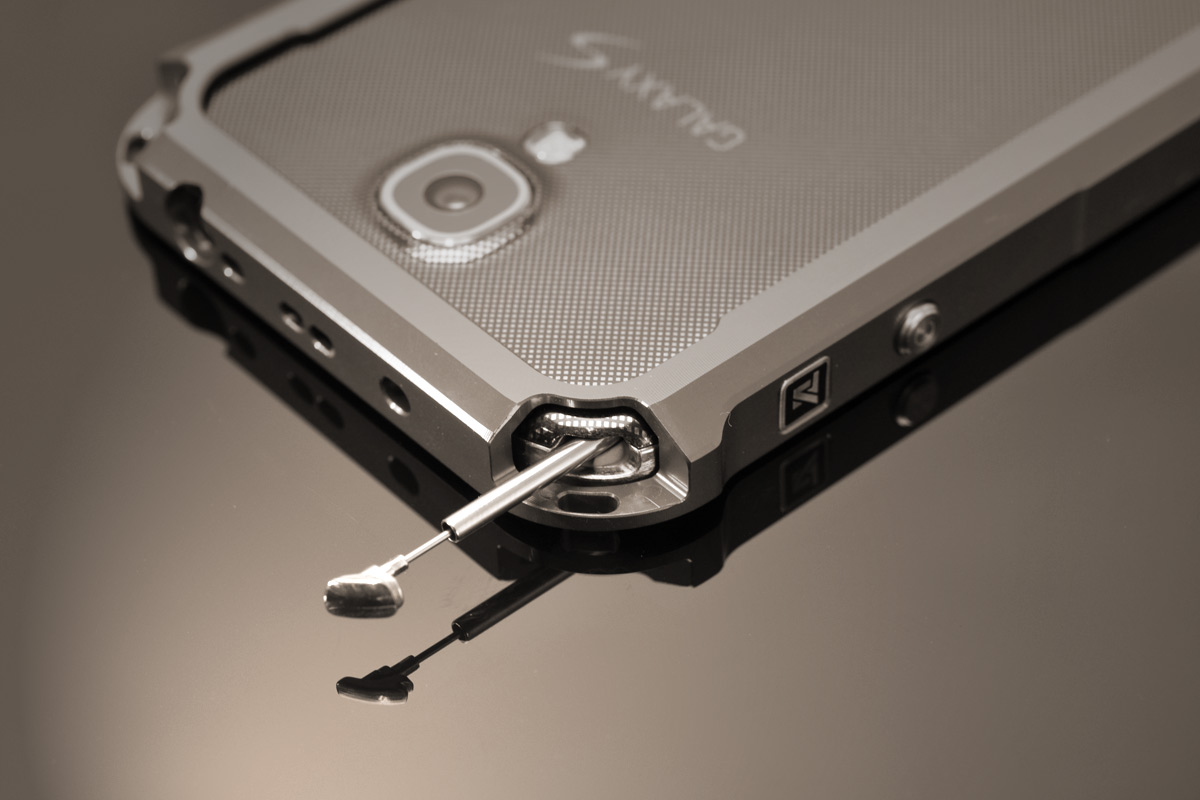 全周にかかる面取り加工と2段階の面取り加工で持ちやすさと削り出しらしさを表現し、アルミの軽量性とアルマイトの耐久性で万が一の落下時にも本体をしっかりガードします。また、装着は両サイドに削り出しのボディーを引き立てるステンレス製のビレットスクリューで簡単装着を実現。特殊な工具を必要としないため外出先でも取り外しが可能です。