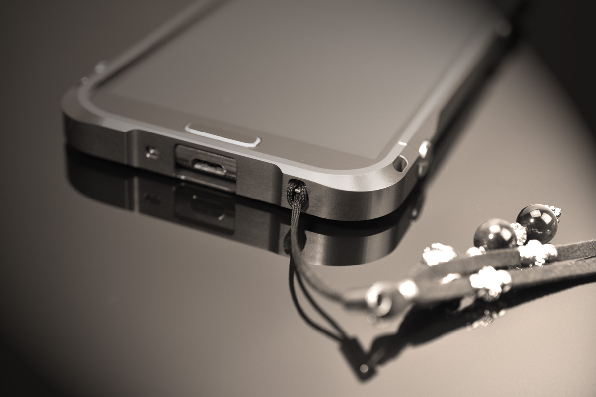 アルミケースに設置したお好みのストラップホール位置に、個性を演出するお気に入りのストラップが装着できるようになっています。