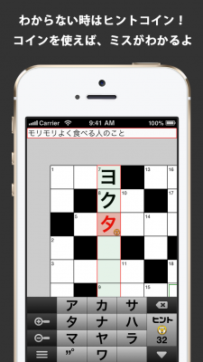 また、クロスワードが難しい、という方のために「ヒントコイン」機能を導入しています。