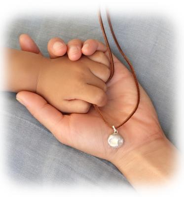 一瞬の思い出をいつまでも形に残せる、小さな指の形や手相を写しこんだ銀のペンダントヘッドは、家族にとっては何よりも素敵な宝物です。