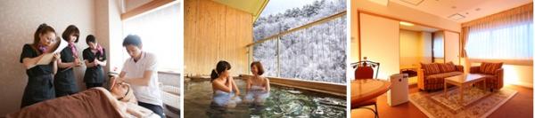 本プランには、小野浩二氏の指導を直接受けたエステティシャンによる105分間のリラクゼーショントリートメントがセットとなっており、心と体の「癒し」を最大の目的としています。開放的で穏やかな環境にゆっくりと心と体をゆだねる事で気持ちに余裕が生まれ、美しさがプラスアルファで付いてくる。そんなエステを味わっていただけます。エステ以外にも安曇野の旬彩をふんだんに取り込んだおいしい食事、中房温泉郷有明荘源泉から直接引湯した豊富な湯量を誇る美肌の湯、女性に嬉しい様々な特典の付いたこの冬いち押しのプランです。通常¥30,000程度の内容が、¥20,000~体験できます。働く女性を応援するご褒美プランとして、お友達と、お母様と、カップルやご夫婦でもお楽しみいただけます。