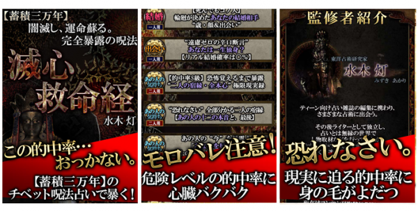 ・アプリ名称:恐怖的中◆チベット呪術占い「滅心救命経」水木灯
