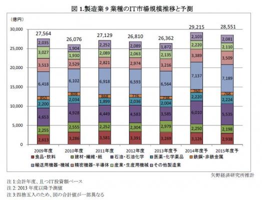 ◆ 2013年度の製造業のIT市場規模は前年度比1.7%減の2兆6,362億円と予測