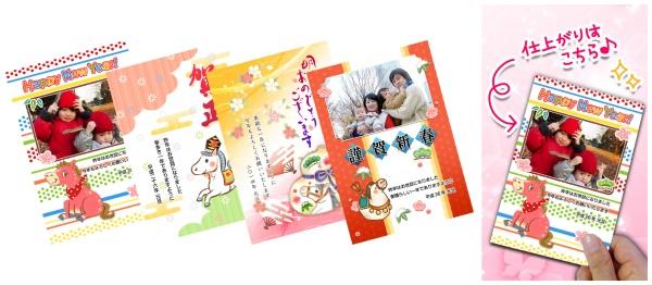 好みのテンプレートを選んで、そこから加工も自由自在。賀詞やイラストの差し替え、ペンツールで、あなただけの年賀状があっという間に完成します。