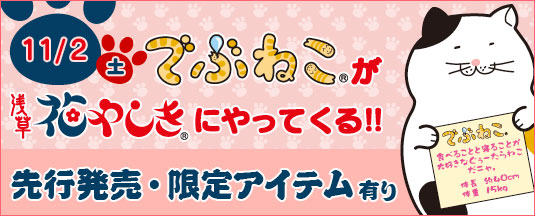 株式会社エスケイジャパン(本社:大阪市中央区 代表:久保敏志)のオリジナルキャラクター「でぶねこ」は 11月2日(土)に浅草花やしきにてイベントを開催いたします。