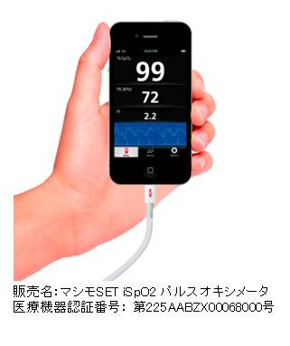iSpO2(TM)(呼称:アイエスピ-オーツー) は、アップル社製のiPhone、iPad、iPad Mini、iPod touchに対応したパルスオキシメータです。