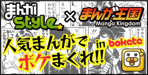2013年11月1日~2014年1月31日の期間、「ボケて」に開設された「まんがStyle公式スペシャルアカウント(http://bokete.jp/user/mangastyle)」に、毎週マンガのコマ画像を使ったお題が投稿され、ユーザーが自由にボケて楽しむことができるもので、新たなマンガコンテンツの楽しみ方を提供します。
