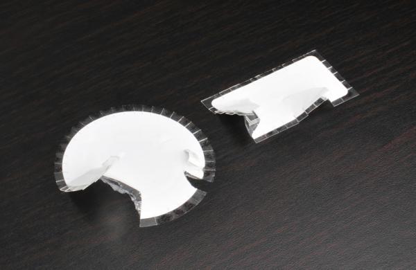 独自製法により、被着体からNFCタグをはがすとNFCタグが破損する設計を採用しています。物理的にNFCタグを破損するため、貼り付けた場所以外でNFCタグの利用ができません。NFCタグを利用した来店者向けの限定の割引クーポンやポイント配布サービスの利用に最適です。