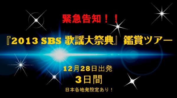 株式会社オーバーシーズトラベルでは、韓国で開催される年末恒例歌番組イベント”2013 SBS歌謡大祭典”鑑賞ツアーを企画・販売し、11月1日より予約受付を開始している。