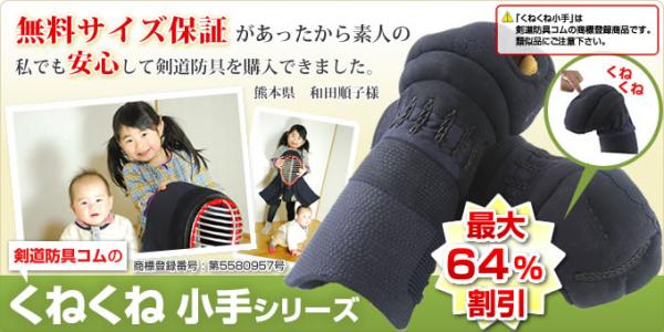 「くねくね小手」の商品名がついた小手は当店の商品の証なので、安心してお求めいただけます。