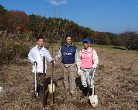 協力して植樹を実施し、和やかな雰囲気の中で無事に全作業を終了いたしました。