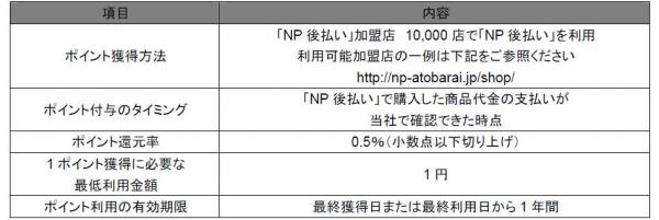 ●ポイント増量キャンペーン:対象店舗で「NP後払い」を使って買い物をするとポイントが増量するキャンペーンにエントリー