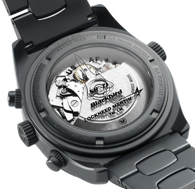 SR-71 Blackbirdとは、1950年代にロッキード社の一部門「ロッキード・マーティン先進開発計画」、通称スカンクワークスで開発された超音速・高高度偵察機。機体をイメージしたデザインとずっしりとした重圧感を感じる同モデルはまさにblackbird偵察機そのもの。他のロッキード・マーティン社とのライセンスウォッチ同様に機体全体のカラーと形状をケースに反映させ、サンドブレスト仕上げされたブラックPVD加工の高級感ある仕上げとなっています。