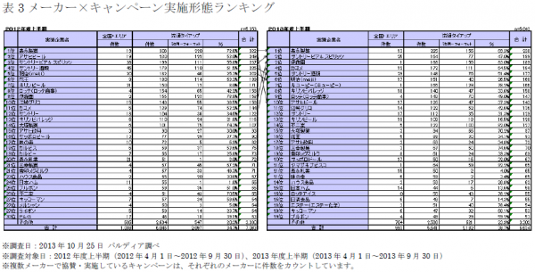 ・2012年度上半期は、2011年の東日本大震災からの反動によりキャンペーン数が増加したが、2013年度上半期はキャンペーン数が平準化されたため。