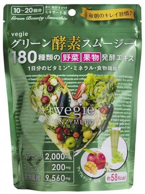 「ベジエ/グリーン酵素スムージー」は野菜や果物、海藻など計180種の酵素をフリーズドライ加工で贅沢に配合した、今話題のスムージードリンクです。