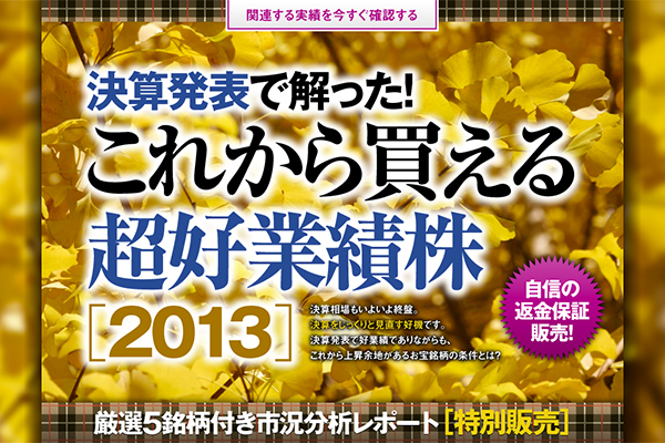 ・商品名:厳選5銘柄付き市況分析レポート「決算発表で解った! これから買える超好業績株[2013]