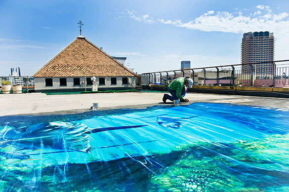 「アクアパンダ トリック・トリップ」はオ-プン以来多くの方にご好評をいただくとともに、 沖縄県内を中心にトリックア-トの製作依頼やトリックア-トのコンペ参加依頼などの お問い合わせを受けておりました。