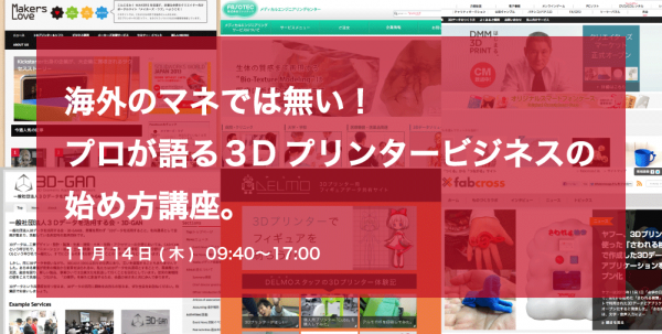 本セミナーでは、すでに日本独自の3Dプリンタービジネスを立ち上げている、パイオニア的日本企業が多数登壇。国内で3Dプリンタービジネスを立ち上げる場合の課題やポイントは何なんか。日本のマーケット状況を考慮して、可能性のあるビジネスを探せる貴重な機会となっています。