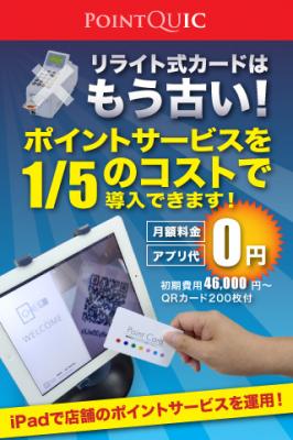 「POINTQUIC」は、既に50社以上200店舗以上に導入済みであるが、今回リリースするサービスは、従来とは異なる月額無料モデル。amazon、googleなどのクラウドサービスが安価に利用できることになった背景などから、クラウドサービスにおいても月額無料サービスが可能と判断し、正式にリリースした。