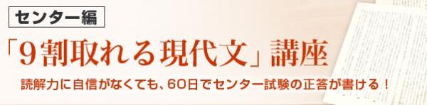 この『9割取れるセンター現代文』講座は、センター試験の現代文の対策講座を、PC、スマホ、タブレットで受講できるサービス。全10回の講座が用意され、テキストはサイト上からダウンロードできる。「読解力」そのものを上げるための講座ではなく、「問題のここを読めば、正答が分かる」というノウハウを教える講座である点が特徴。価格は14,800円(税抜)。
