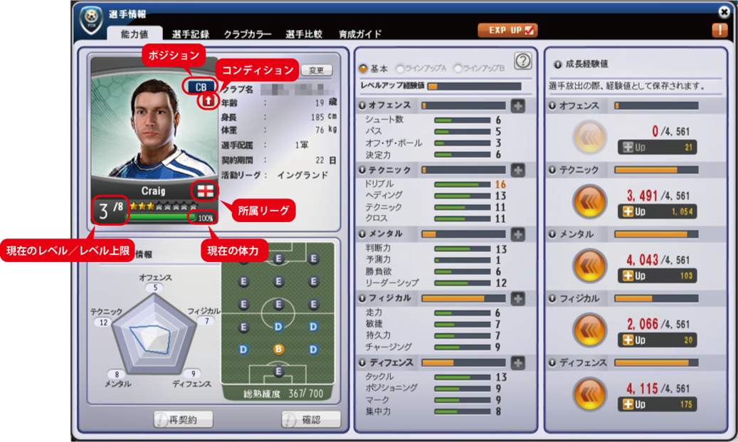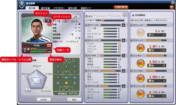 まずチェックしたいのは、ポテンシャルと現在のレベルです。