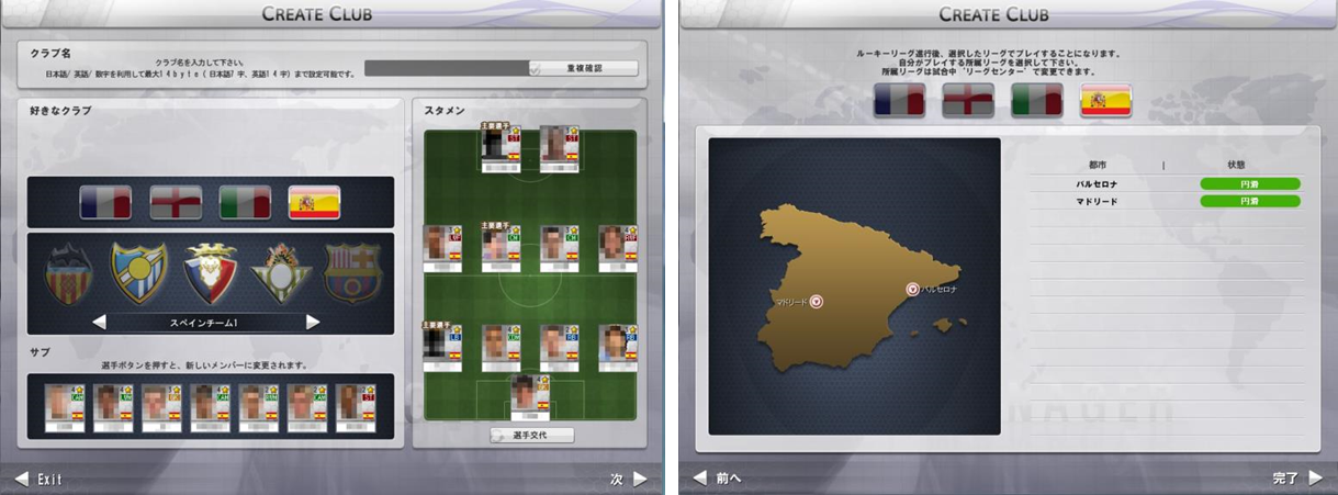 限定人数で開催のCBTなので、リーグが作れる国は限られています。スペインを選んでマイチームを作ろう。最初のメンバーはあまり能力が高くないので、選手カードを引いて補強しましょう。