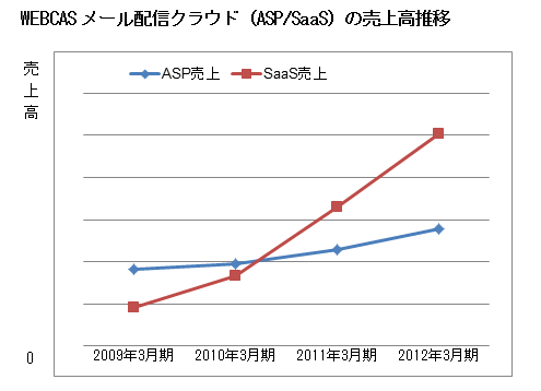 ミック経済研究所が発行した分析レポート「クラウドサービス市場の現状と展望2012年度版」において、当社主力製品「WEBCAS」シリーズのメール配信システム「WEBCAS e-mail(ウェブキャス イーメール http://www.webcas.jp/e-mail/ )のクラウド版が伸長率35.1%となり、2012年度メール配信クラウド市場において最も高い伸長率を記録いたしました。今回の調査レポートにより、当社は2010年、2011年に引き続き、調査対象企業の中で3年連続伸長率1位となりました。