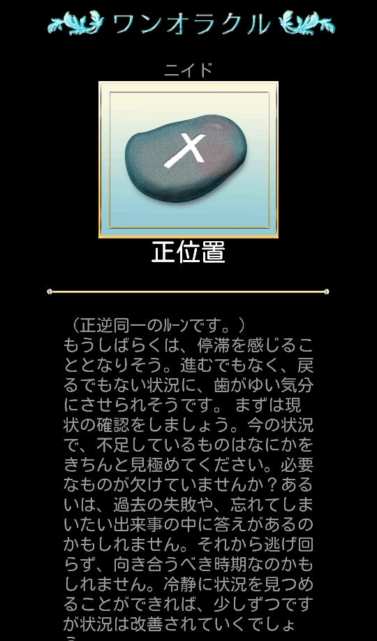 古代ケルトのドルイド(賢者)たちの手によって「進むべき道を指し示すもの」として伝えられてきた、13の月の暦「ケルト暦」とタロットカードを融合した、オリジナルカード「アバロンタロット」と「ルーン」で占います。恋の悩みや、人生の悩みを解消する各種占いメニューはもちろん、毎日の過ごし方の指針となる「デイリーメッセージ」や「夢辞典」など、毎日見たくなる占いも満載です。