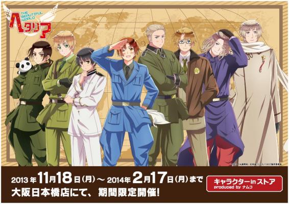 株式会社ナムコが運営する店舗、「namco大阪日本橋店」(大阪/難波)にて、2013年11月18日(月)~2014年2月17日(月)の期間、アニメ「ヘタリア The Beautiful World」とのタイアップイベント「ヘタリア The Beautiful World ナムコ キャラクターINストア」を開催いたします。