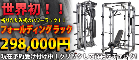 ありそうでなかった!!世界初の折りたためるパワーラック 収納からオープンまで約60分で本格パワーラック完成!!