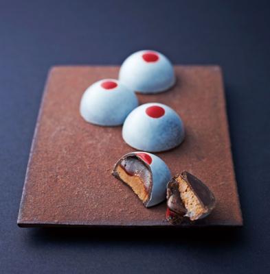 『ゴー・ミヨ』でベルギーのナンバーワンショコラティエに選ばれたショコラティエM。日本産の醤油とチョコレートのコラボレーションから生まれた日の丸デザインの新感覚チョコ。/1箱 2,800円(5%税込み)