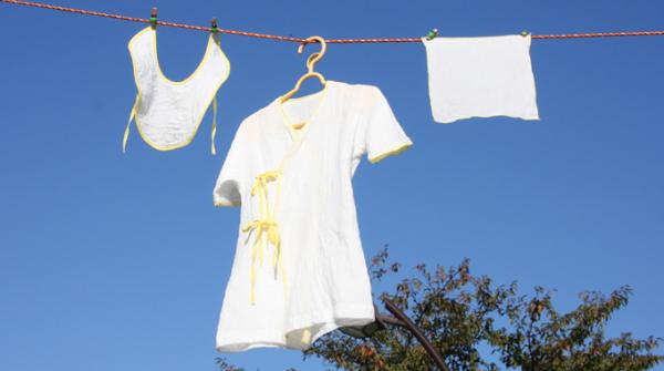 デリケートな赤ちゃんのお肌に長時間触れるものだから、無添加にもこだわっています。一般的に使われている柔軟剤や染料などは使用せず、科学物質が残留しないように仕上げています。布のすべりを良くするために糊付け仕上げをしますが、科学糊は一切使わず天然の沖縄産澱粉糊のみを使用しています。