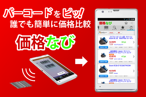 商品や棚のバーコードを読み込んで、ネット通販と店舗とどちらが安いか比較!