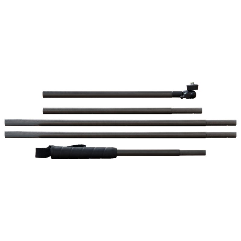 FatGecko Kaboom ブームマウントはカーボンファイバーを採用したカメラ用ブームで、ボールジョイントにより簡単に5分割できる構造になっています。 分割されたブームの長さはもっとも長いもので44cmと持ち運びに大変便利で、それらのブームの組み合わせにより最短57cmから最も伸ばした状態で158cmとマウントの長さが調整可能です。 カメラ取付け用には小型の1/4-20UNCボールヘッドが先端に取り付けられていて、一般的なカメラすべて取付け可能です。 ボールヘッド、ボールジョイント用パーツ共すべてステンレス製で錆に強く、海での使用にも長期間耐えられます。 ラバー製グリップは大変持ち易くリストストラップも付いていて安心です。 またグリップエンドには1/4-20UNCメスネジが付いていて 一般的な三脚のヘッドにそのまま取り付けることができます。
