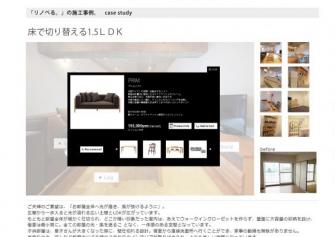 「暮らしのレコメンド」では、WEB サイト上の施工事例やショールーム画像に写っている家具や雑貨の詳細情報( ブランド、寸法、素材、価格等) を画面上に表示します。リノベーション検討中のお客様は、部屋の完成形をイメージするために施工事例の画像を多く利用しています。そこで空間だけではなく家具や雑貨などの情報を同時に提供することで、お客様はインテリアの具体的なイメージと有益な情報を得、情報力を高めることが可能になります。将来的には商品の購入を同サイト内で行える機能を追加し、15 年度には提携インテリアショップ20 店舗、ネット販売による売上1 億円を見込んでいます。