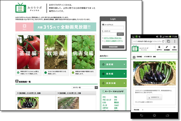 千葉大学発の農業コンサルベンチャー「みのりラボ株式会社」は、株式会社アジャストが開発・販売する動画配信サイト構築パッケージ「ソーシャルキャスト」を採用し、野菜を楽しく、上手に育てるための動画の配信と販売を開始いたしました。