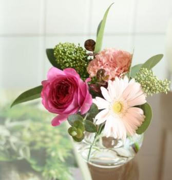 テーブルに、季節の花を気軽に飾れば、日々の生活の中で無くては