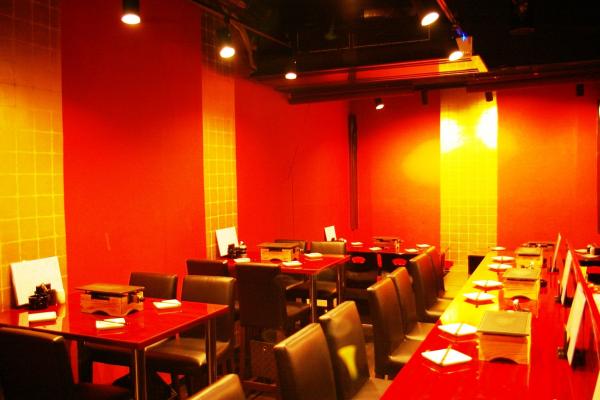 内装は祇園のお茶屋をイメージした朱色と金で統一。飲み会やパーティーとして、またファミリーでもBBQ感覚でお楽しみ頂けます。