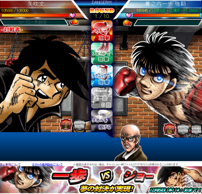 「はじめの一歩 THE FIGHTING!」(『Yahoo!モバゲー』&『mixi』)の開発運営を行っている株式会社アルグラフ(本社:東京都文京区、代表取締役:塙 智明)は、株式会社講談社(「あしたのジョー~あしたのために~」運営)と共同で、お互いのキャラが登場し合うという画期的な試みのキャンペーンを、 2013年11月18日(月)より開始しました。