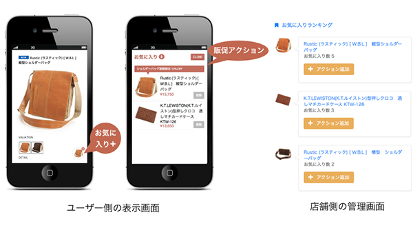 popIn株式会社(本社:東京都文京区、代表取締役:程 涛、以下 popIn)は、 スマートフォンのECサイトでユーザー解析と連動したアクションを行う「popIn Action」に、ユーザーのお気に入り情報を簡単に把握し、販促アクションできる「お気に入りマーケティング」機能を11月25日にリリースいたしました。購買意欲の高いお気に入りデータを活用することで、モバイルECサイトのさらなる売上増加が期待されます。