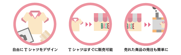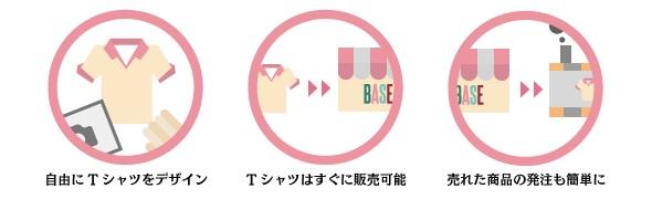 BASE株式会社(代表:鶴岡裕太/東京都港区)は2013年11月29日(金)、好きな画像データをアップロードするだけでオリジナルのTシャツを販売できるTシャツ作成AppsをClubT( http://clubt.jp/ )との提携により『BASE(ベイス)』( https://thebase.in/ )上にて公開いたしました。このTシャツ作成Appsを使って販売される商品は受注生産形式になりますので、ショップオーナーの在庫リスクは一切ありません。売れた分だけTシャツの発注ができます。