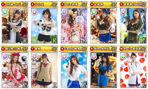 グラビア美女ポリス総選挙(正式イベント名、真人美女刑警 胸猛集氣!!)は、10 名の人気台湾モデルが美女ポリス登場キャラクターに扮し、一般ユーザーの投票によって人気を競うイベントです。今回ノミネートされた10 名のモデルのうち、人気上位の3 名は、後日、ゲーム内で利用可能な高レアリティカードとしてユーザーに配布をいたします。尚、投票期間中、Facebook ページ内にて進化カードを随時公表いたします。是非お楽しみください。