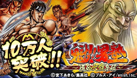 株式会社enish(本社:東京都渋谷区、代表取締役社長:杉山 全功、以下「エニッシュ」)と株式会社ブルズ・アイ(本社:東京都渋谷区、代表取締役社長:上村 豊彦)の提供するネイティブアプリゲーム「魁!!男塾 ~連合大闘争編~」は、おかげさまで10万ダウンロードを突破いたしました。